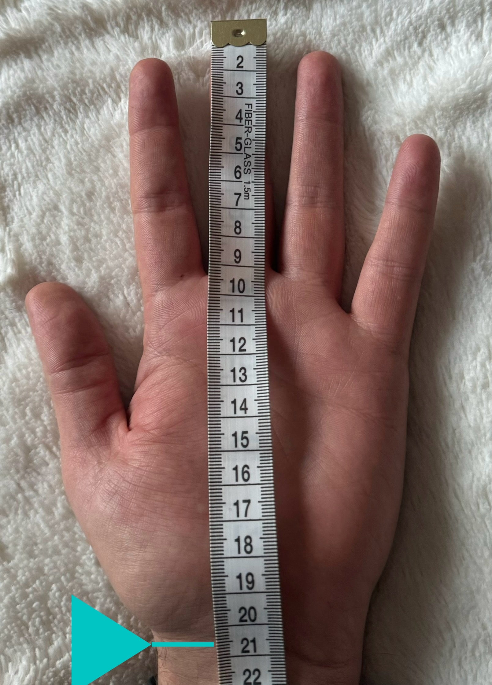 - Measure straight down to the bottom of your palm/wrist.